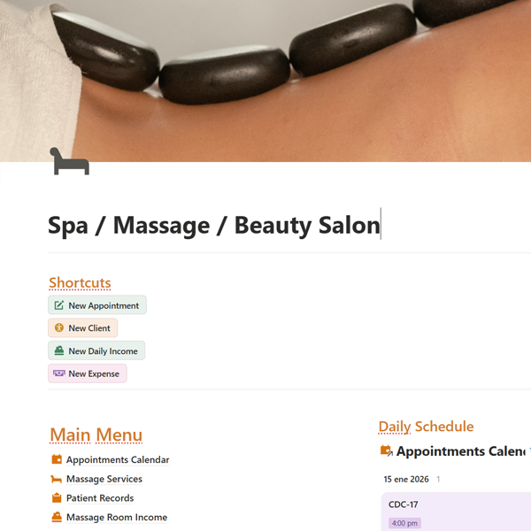 Salón de Spa / Masajes (Plantilla Notion)