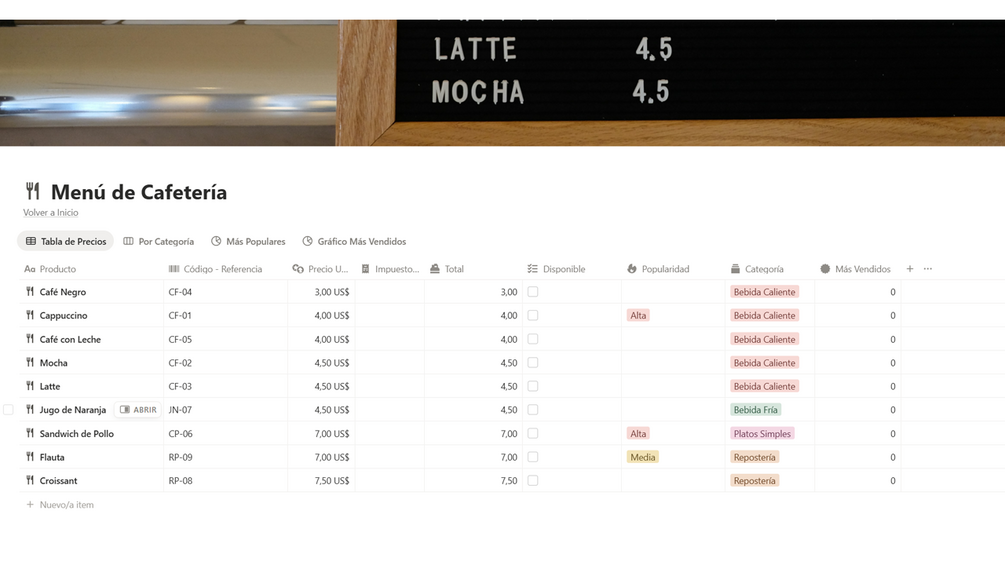 Gestion de Cafetería (Plantilla de Notion)