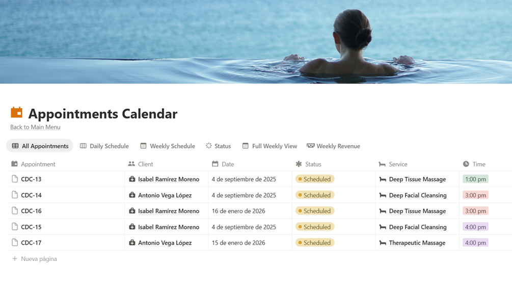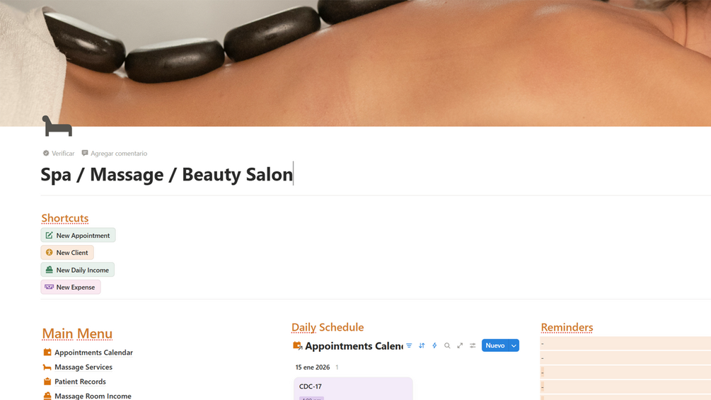 Spa / Beauty Salon / Massage (Notion Template)